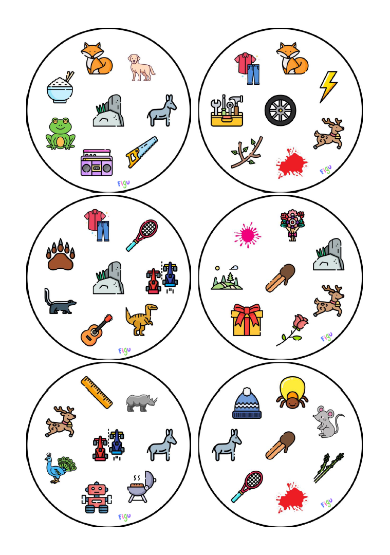 • Sé el más rápido en encontrar el dibujo que se repite mientras practicamos el fonema objetivo. Ideal para utilizar en etapas de automatización.