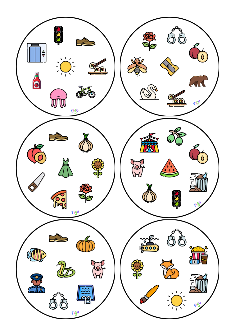 • Sé el más rápido en encontrar el dibujo que se repite mientras practicamos el fonema objetivo. Ideal para utilizar en etapas de automatización.